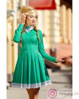 Платье женское с белой кружевной окантовкой зелёное