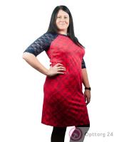 Платье женское красно-синее с кружевными рукавами