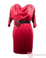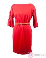 Платье женское с декором и поясом красное