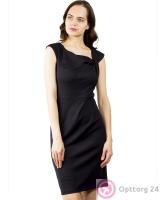 Платье черного цвета прямого кроя.