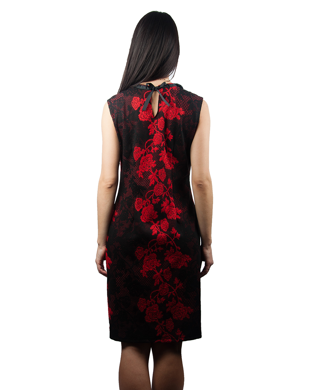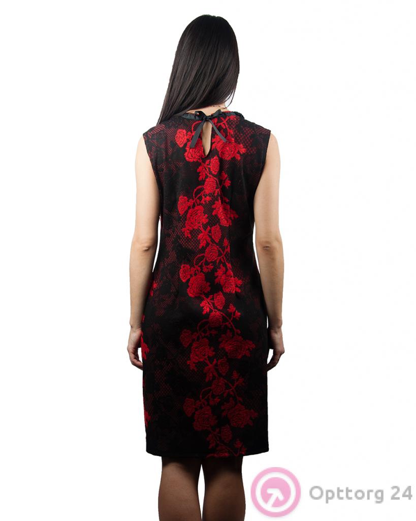 Платье женское черное с красным узором и воротничком из бисера оптом