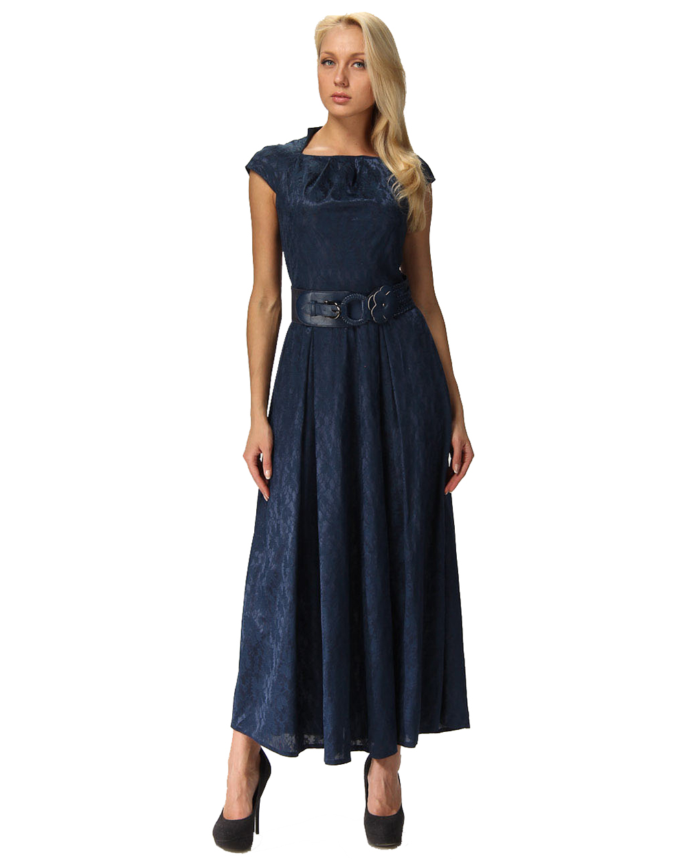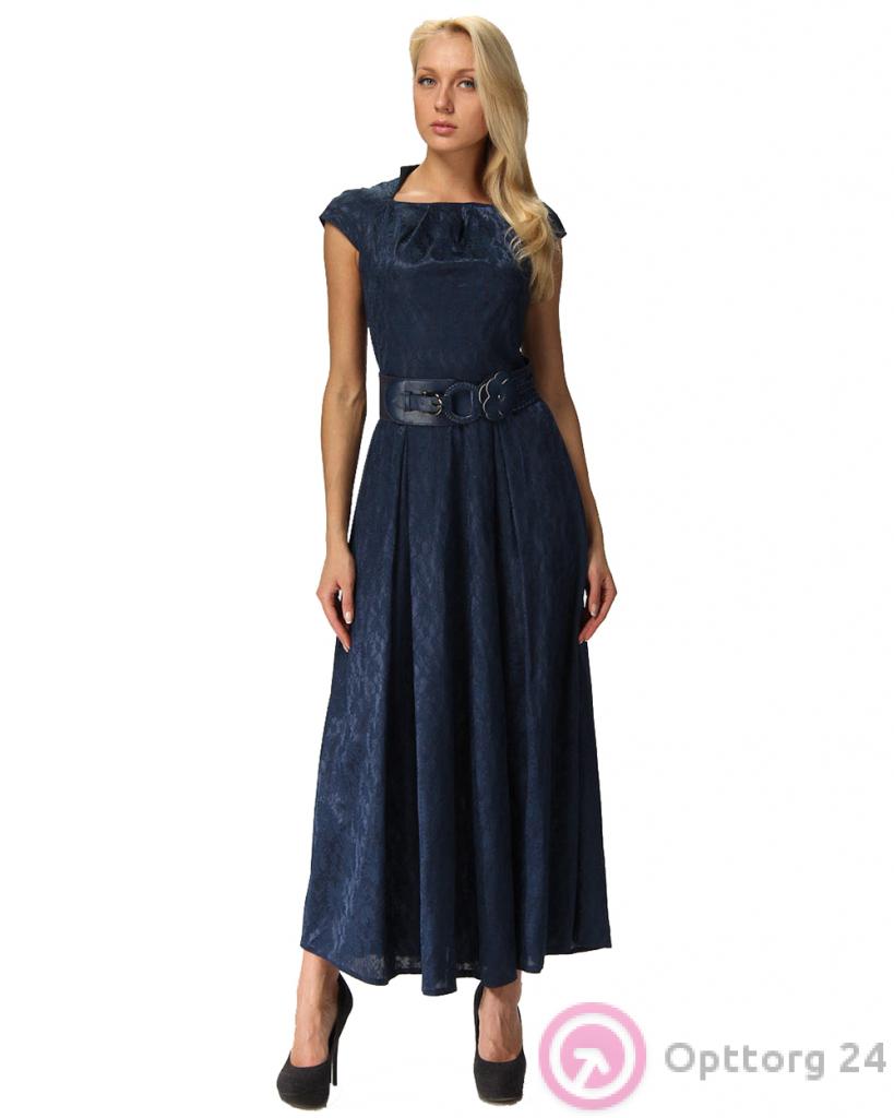 Платье женское вечернее темно-синее кружевное с поясом оптом