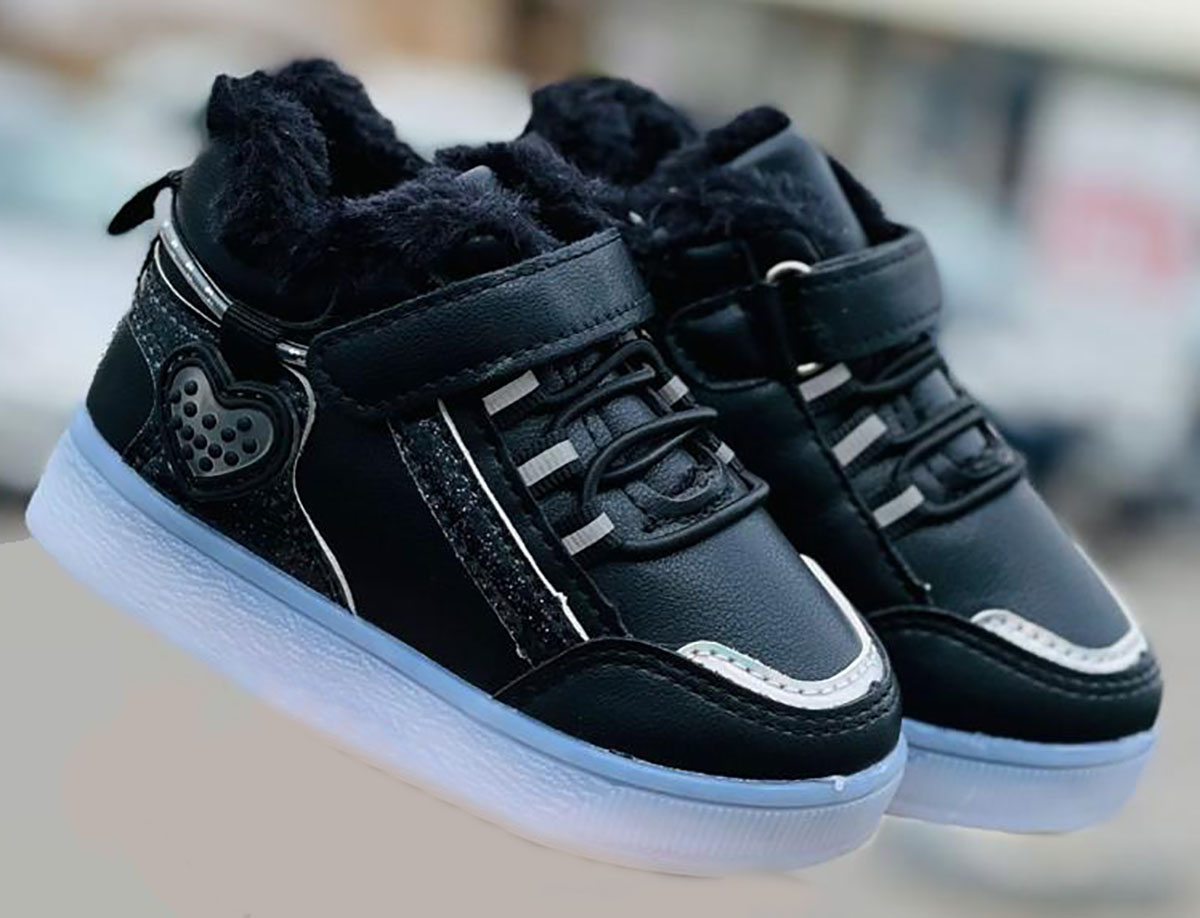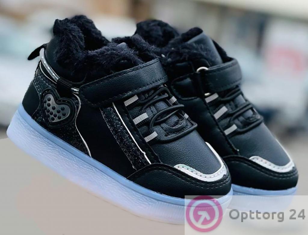 Ботинки зимние для девочки святящиеся цвет черный оптом