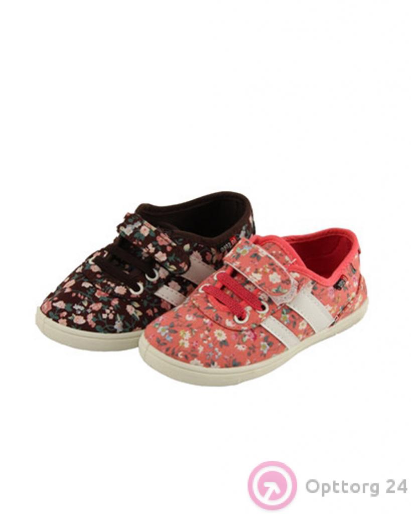 Кеды детские "Цветочек" с декоративной шнуровкой и липучкой оптом