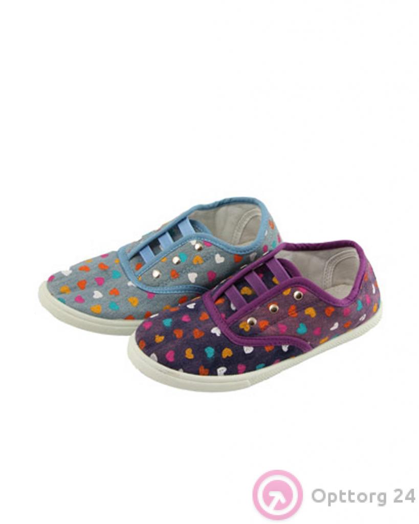 Кеды детские голубые и фиолетовые с сердечками оптом