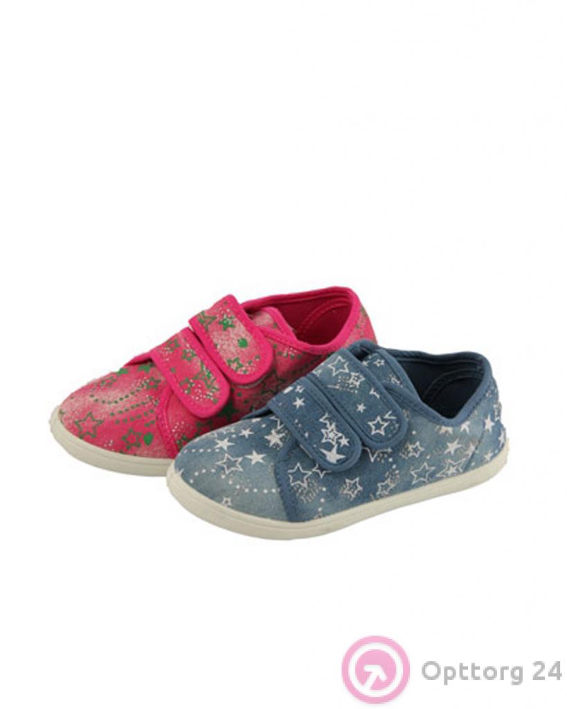 Стильные кеды для деток из текстиля. Моделька имеет две застежки-липучки, с помощью которых можно регулировать ширину обуви у лодыжки. Подошва резиновая, легко гнеться и хорошо амортизирует при хотьбе. В упаковке кеды двух расцветок: розовые со звездочками зеленого цвета и голубые с булыми звездочками.