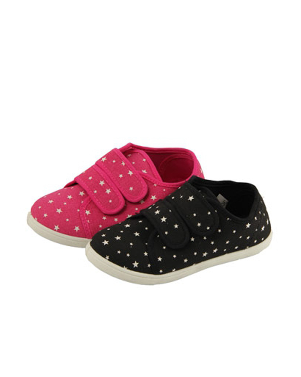 Симпатичные кеды для девочек с принтом в виде маленьких звездочек и застежками-липучками. Подошва резиновая, легкая и стойкая к стиранию. Благодаря текстильном верху кеды отлично пропускают воздух и не парят. В упаковке два разных вида расцветки.