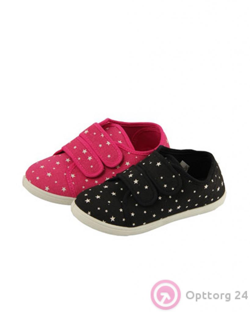 Кеды детские на липучках "Звездочки", черные и розовые оптом