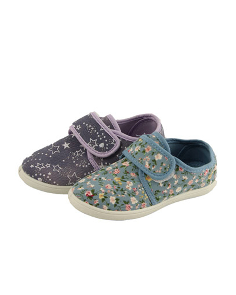 Кеды детские на липучке со звездочками и цветочным принтом оптом