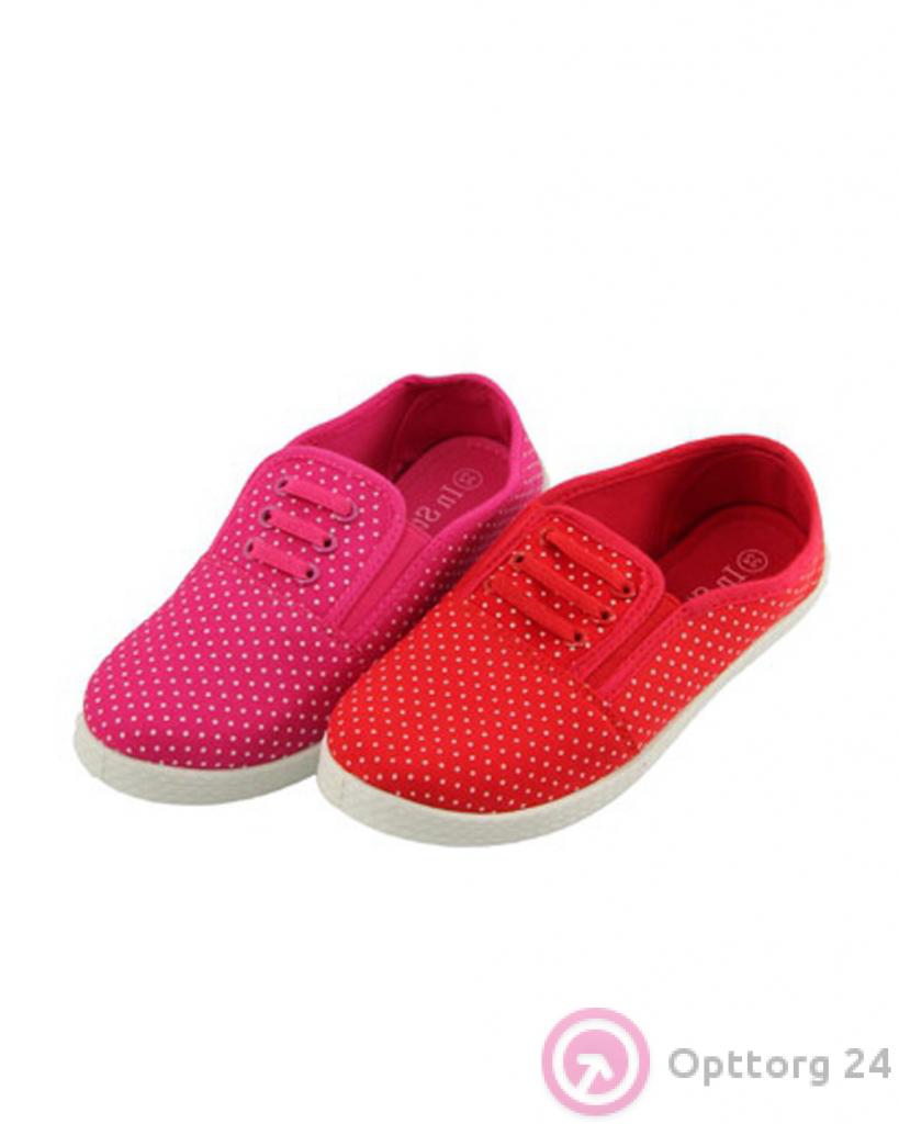 Кеды детские на резинках красные и розовые в горошек оптом