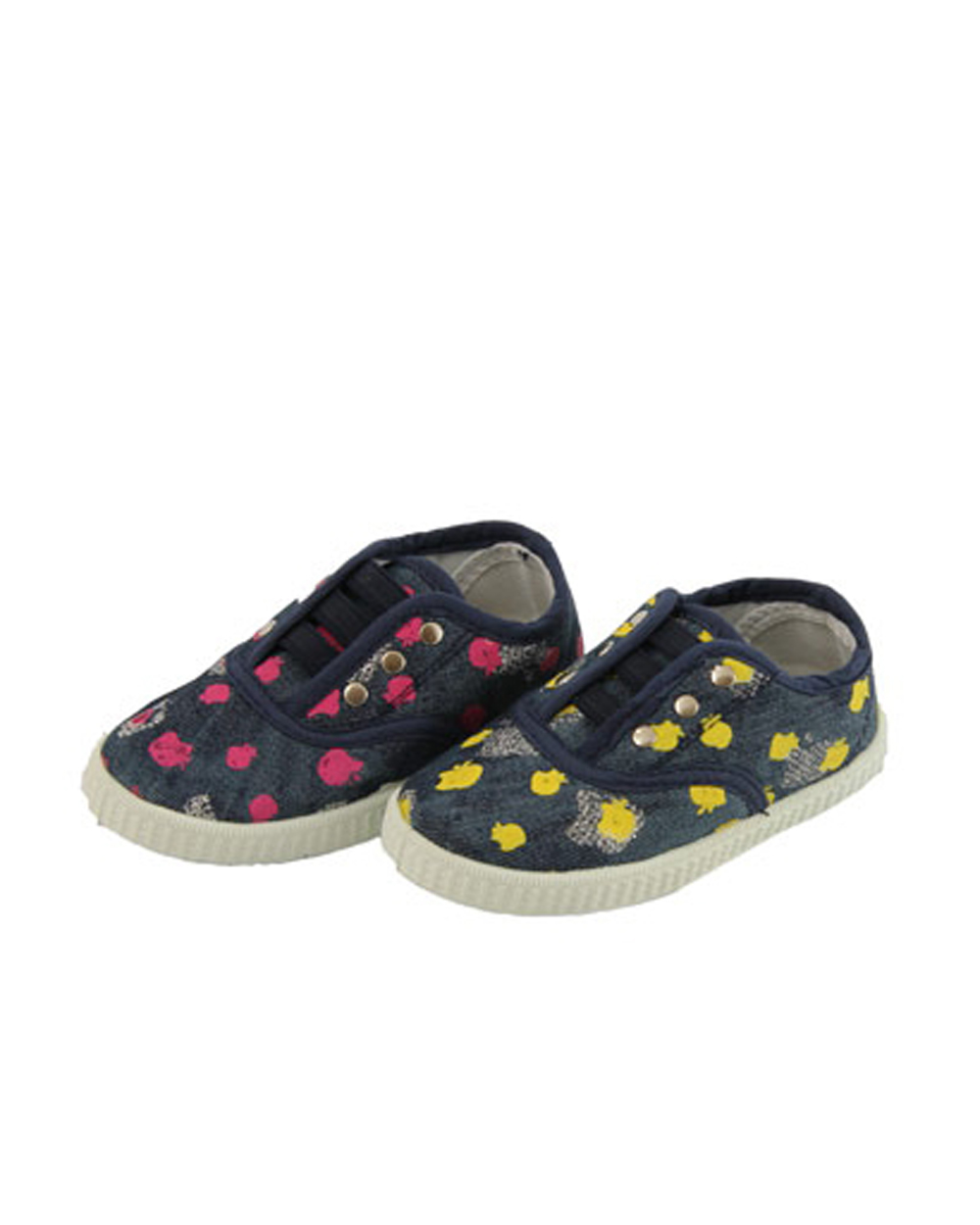 Симпатичные девчачьи кеды, выполнены из качественного текстиля с нанесенным принтом в мелкие цветочки. В коробке представлены два вида рассцветок: розовые цветы на темно-синем фоне и желтые цветы на темно-синем фоне. Подошва резиновая, износостойкая. Универсальная обувь на сезон весна-лето.