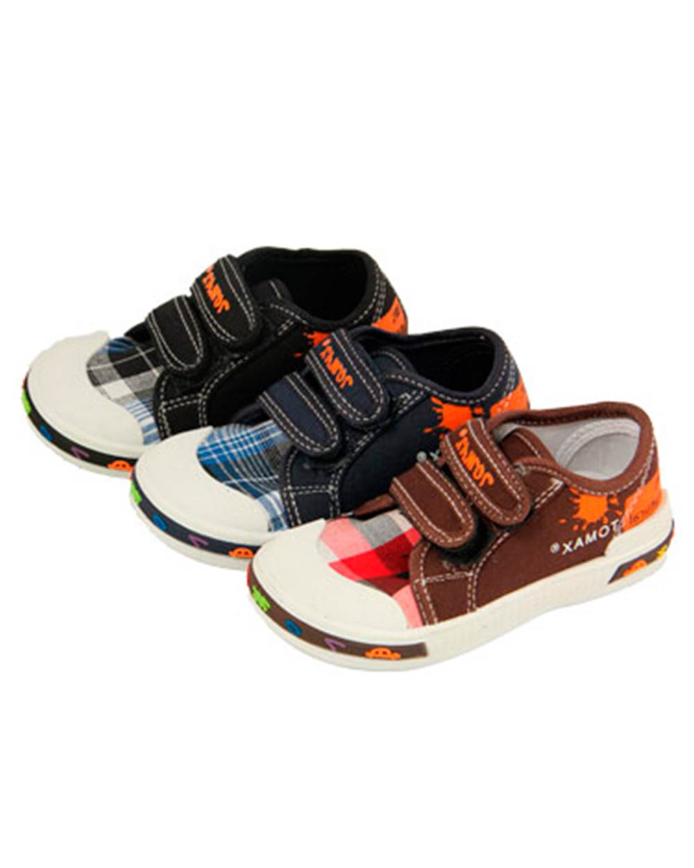Симпатичные кеды с клетчатым принтом спереди. Застегиваются на двойную липучку.