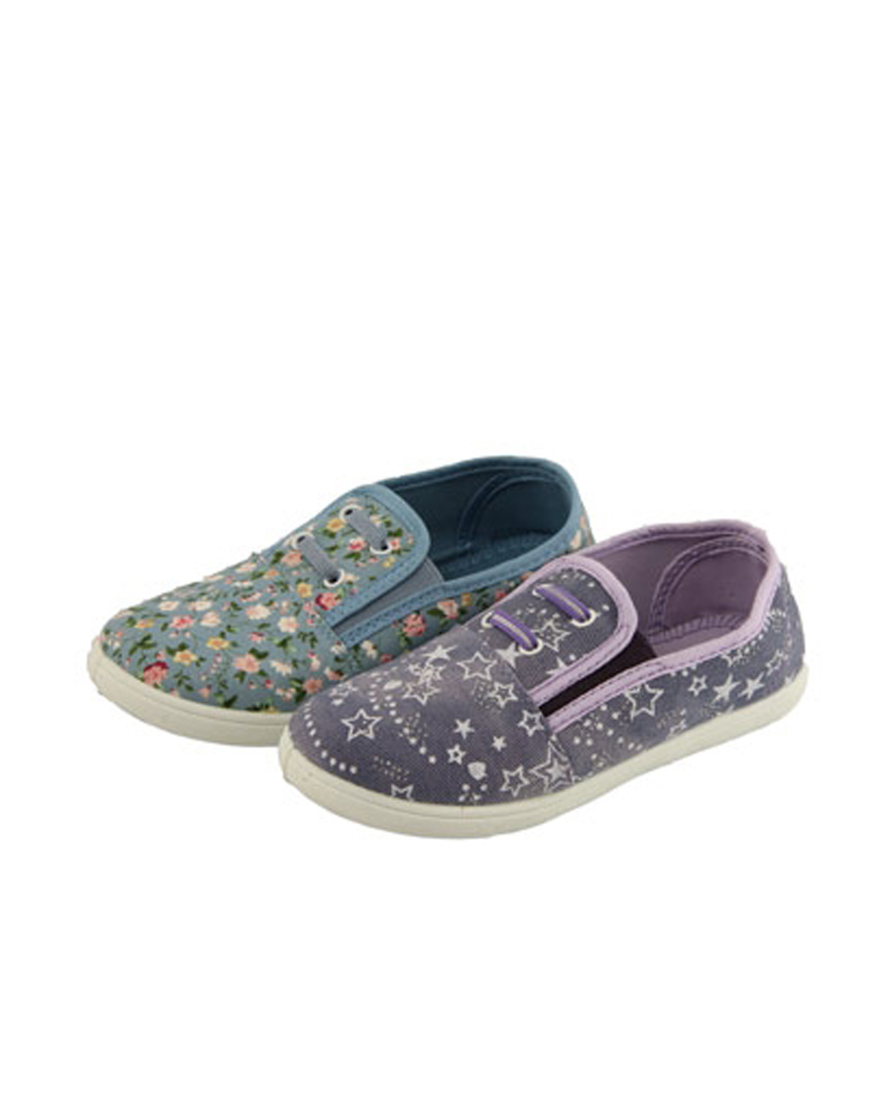 Детские кеды для девочек фиолетового со звездочным принтом или голубого цвета с цветочным принтом. По боках модели вставлены резинки для большего комфорта при обувании. Декоративные шнуки выполнены в тон кедам. Подошва белого цвета, очень легкая и гибкая, не скользит. Отличный выбор для носки каждый день.