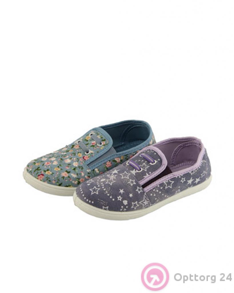 Кеды детские с принтом на резинках, цвет голубой и фиолетовый оптом