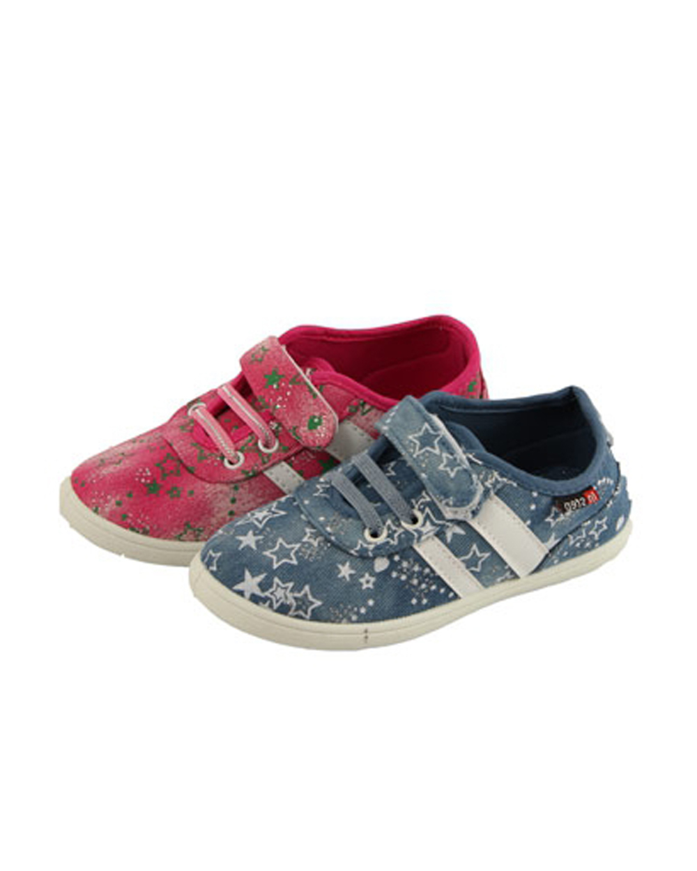 Детские кеды с принтом в звездочки на липучке. Прекрасная обувь для повседневной носки. Благодаря необычному принту и ярким цветам, кеды отлично сочитаются с любой одеждой ребенка. Верх выполнен из качественного текстиля. Подошва очень мягкая, не скользит и не стирается при носке. В упаковке два варианта расцветки: голубой со звездочками белого цвета и розовый с зелеными звездочками.