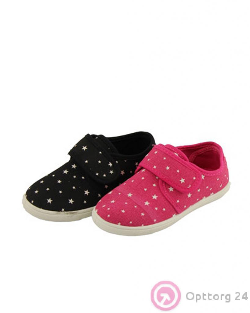 Кеды детские "Звездочка" на липучке, черные и розовые оптом
