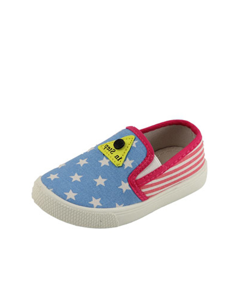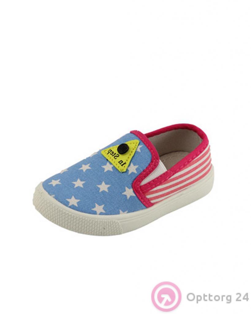 Стильные удобные кеды для самых маленьких. Прекрасно подойдут на любую ножку за счет эластичных вставок по боках. Кеды выполнены из плотного текстиля, перед голубого цвета с белыми звездами, задник - в бело-розувую полоску. Подошва хорошо гнеться и амортизирует при хотьбе. Такая обувь отлично подойдет под лбой стиль одежды.