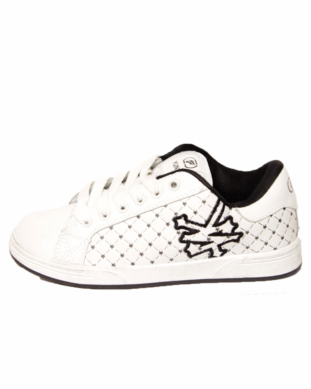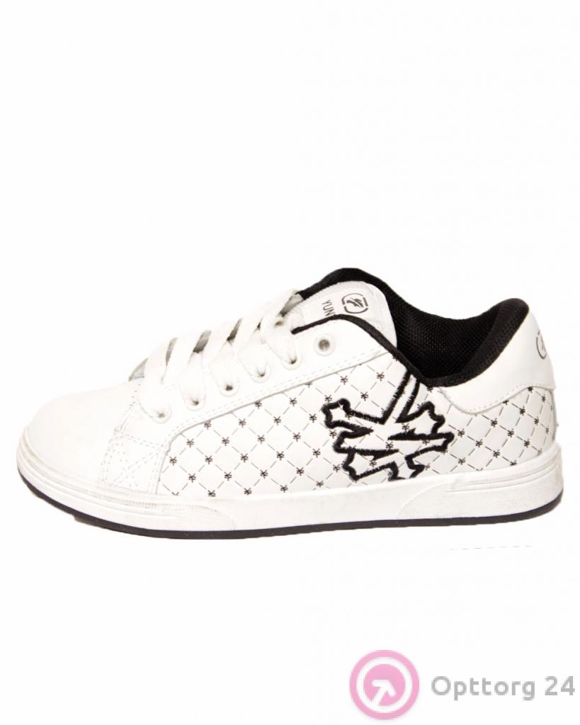 Удобные и стильные кроссовки классического белого цвета. По боках изделие украшено вставками в ромбик. Подошва имеет хорошую амортизацию и очень легкая.