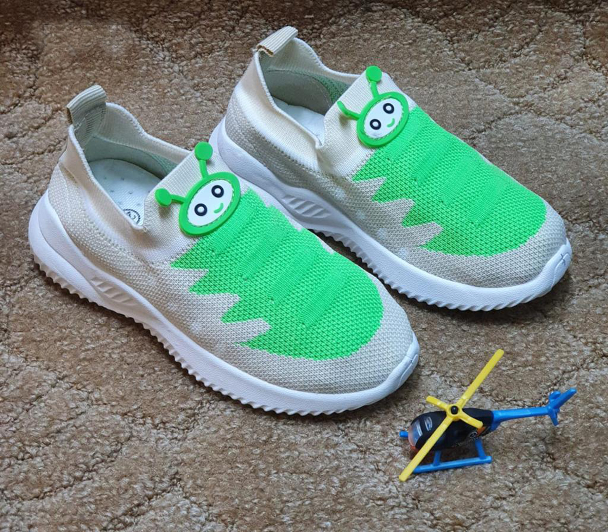 Описание: Кроссовки детские цвет бело-салатовый. Сплошная подошва белого цвета.