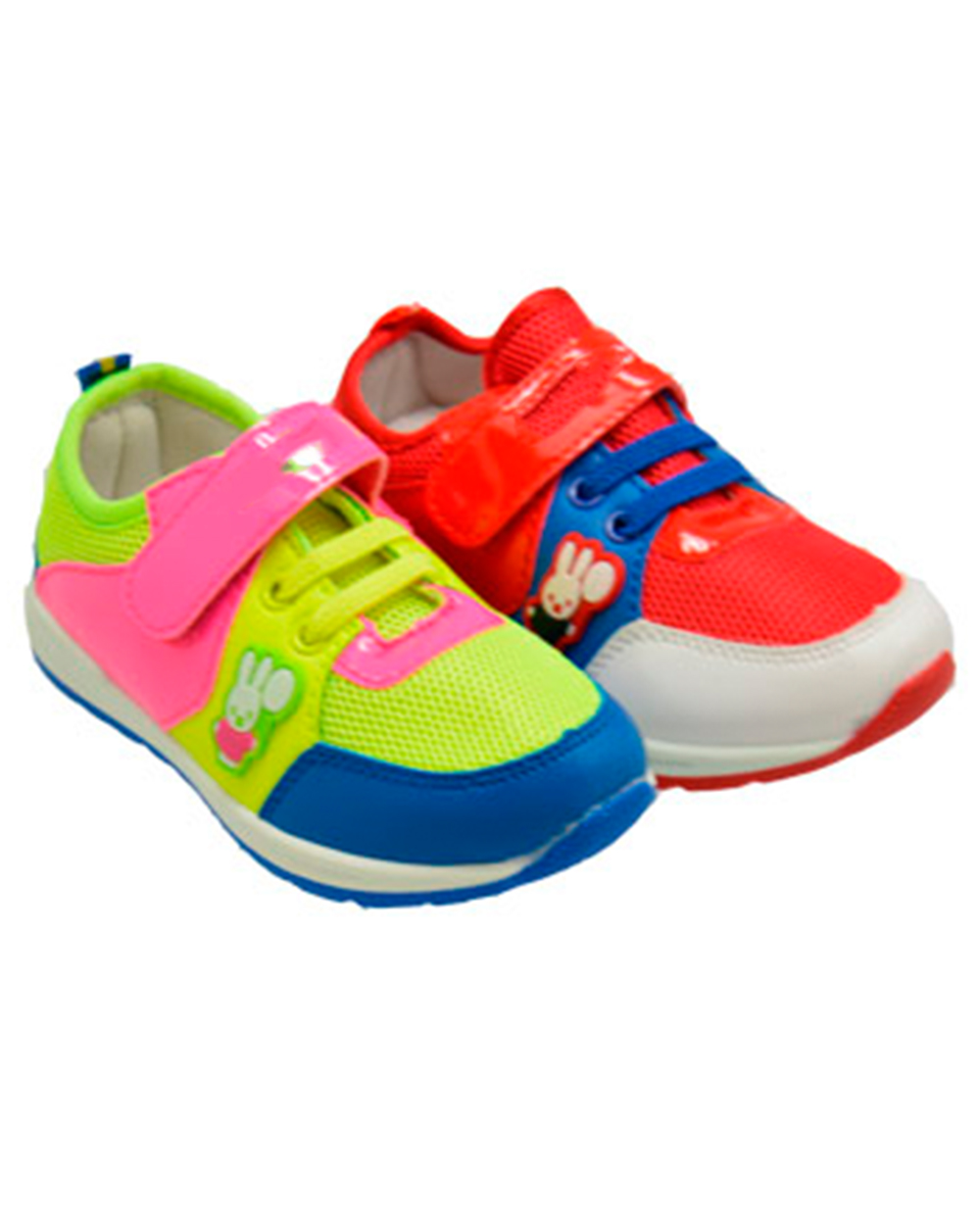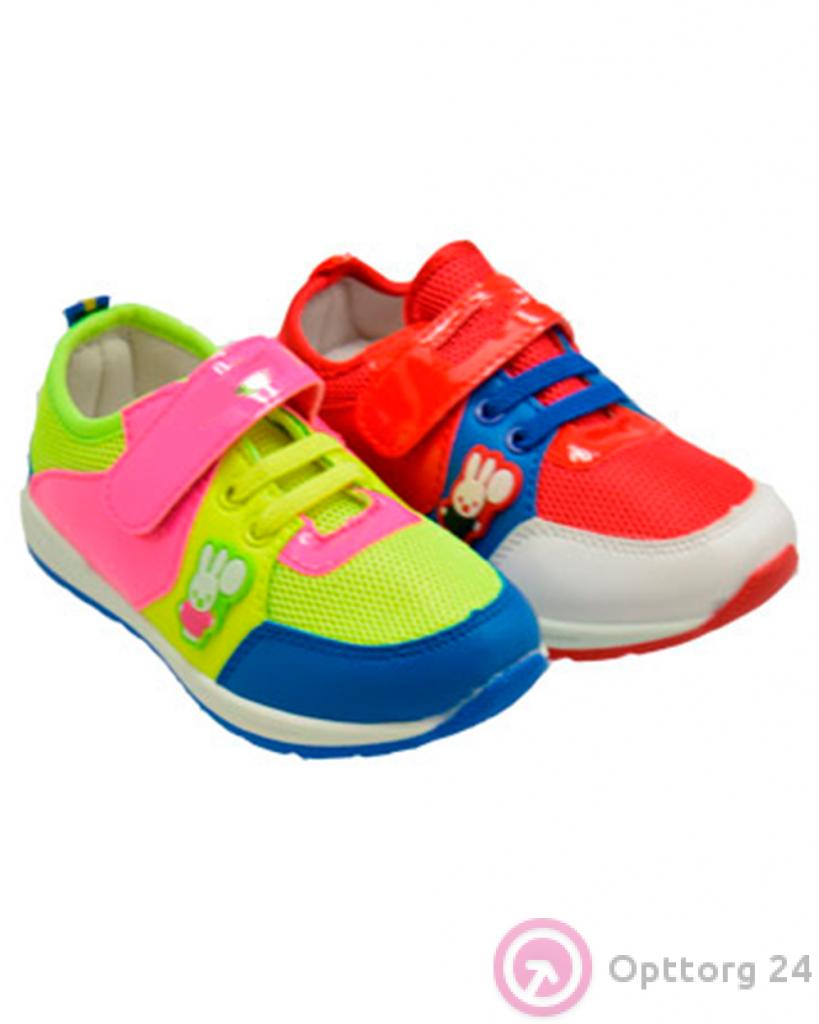 Детские кроссовки ярких цветов. Изделие выполено из искуственной кожи и текстиля, а также имеет лакированый ремешок-липучку.