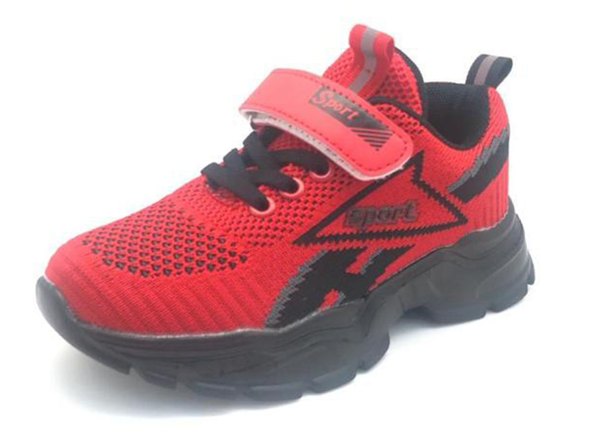 Описание: Кроссовки детские универсальные красного цвета, на мягкой подошве. Застежка шнурки-резинка и на липучке. Округлый мыс.