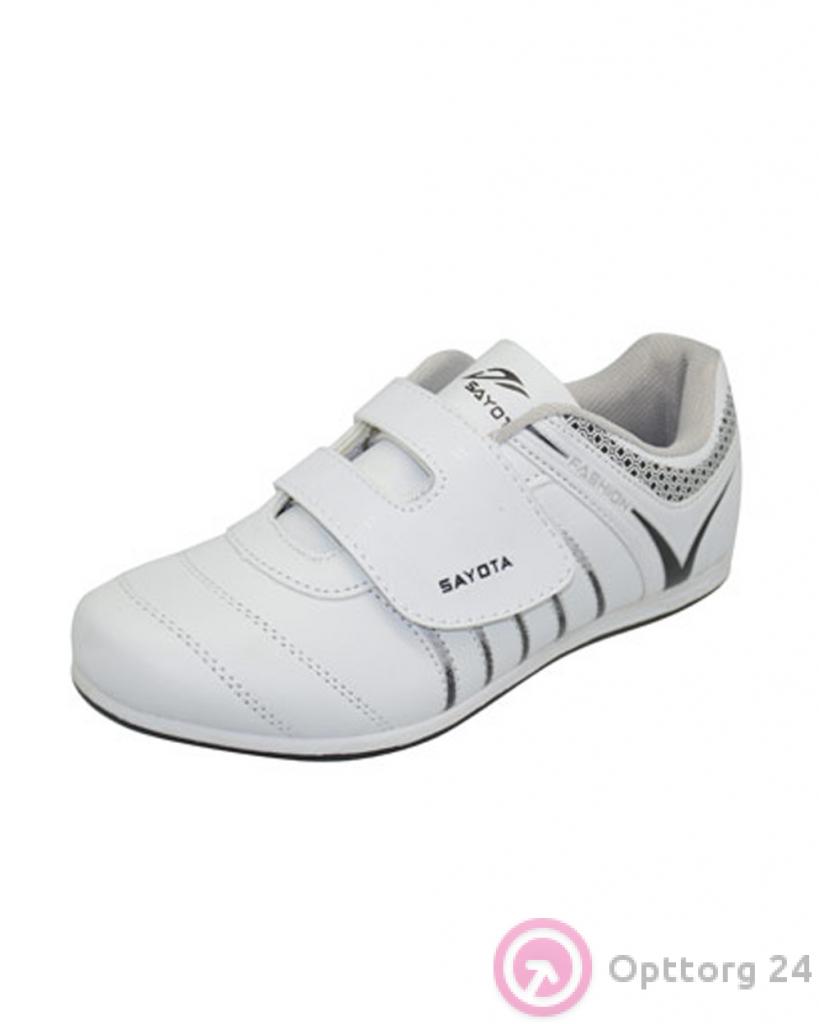Кроссовки подростковые летние белого цвета на широкой липучке оптом