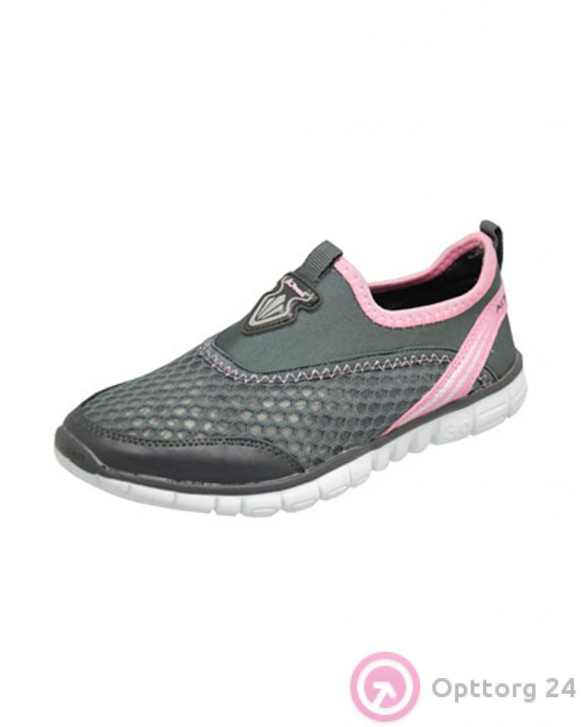 Стильные летние кроссовки для девушек высокого качества. Модель прошитая, без застежек. Верх сетчастый, отлично пропускает воздух. Носок отделан кожаной вставкой. Задник выполнен из плотного текстиля. Подошва из прочного полиуретана, хорошо гнеться, износостойкая, с небольшим протектором и усиленной пяткой. Модель серого цвета с вставкой нежного розового цвета.