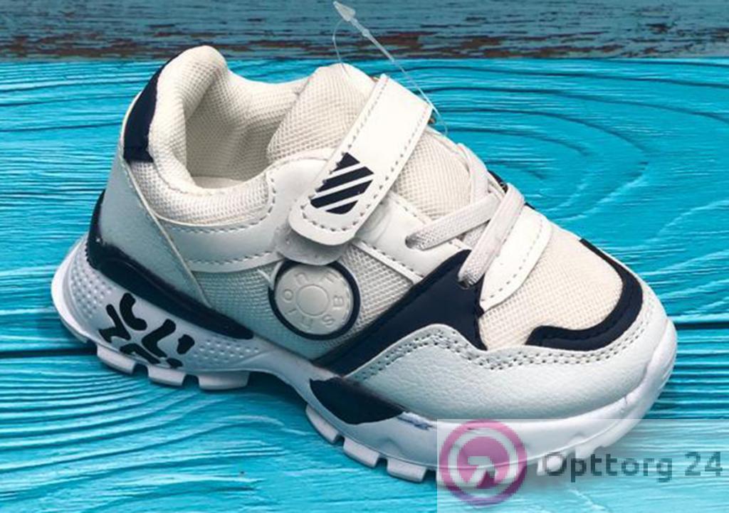Кроссовки подростковые на липучке цвет белый с черным оптом