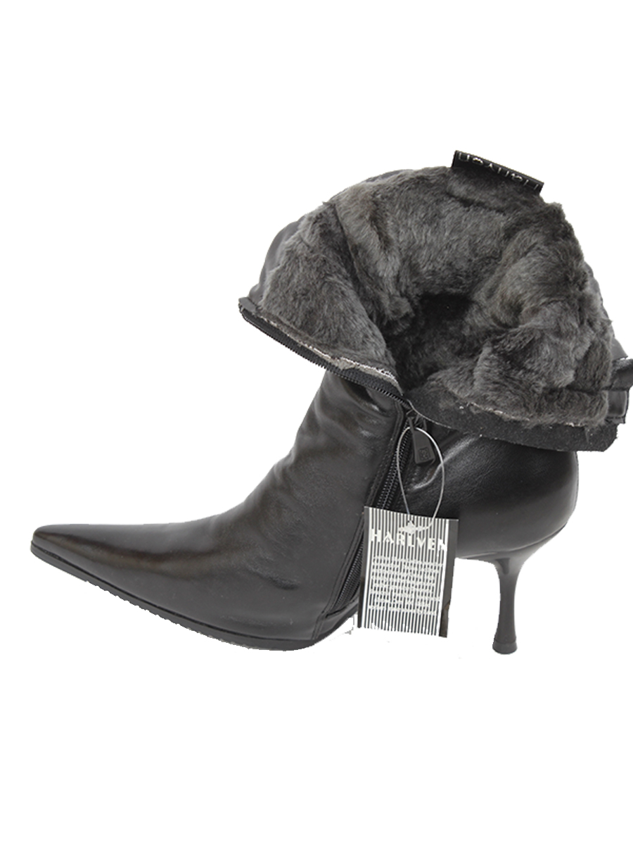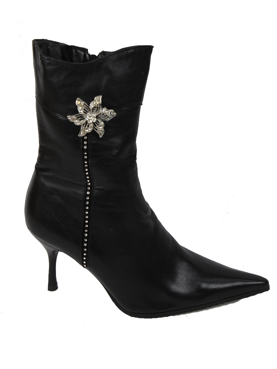 Сапоги женские класса эконом. Зимние с мехом. Стиль классический, цвет черный со вставкой в форме цветка
