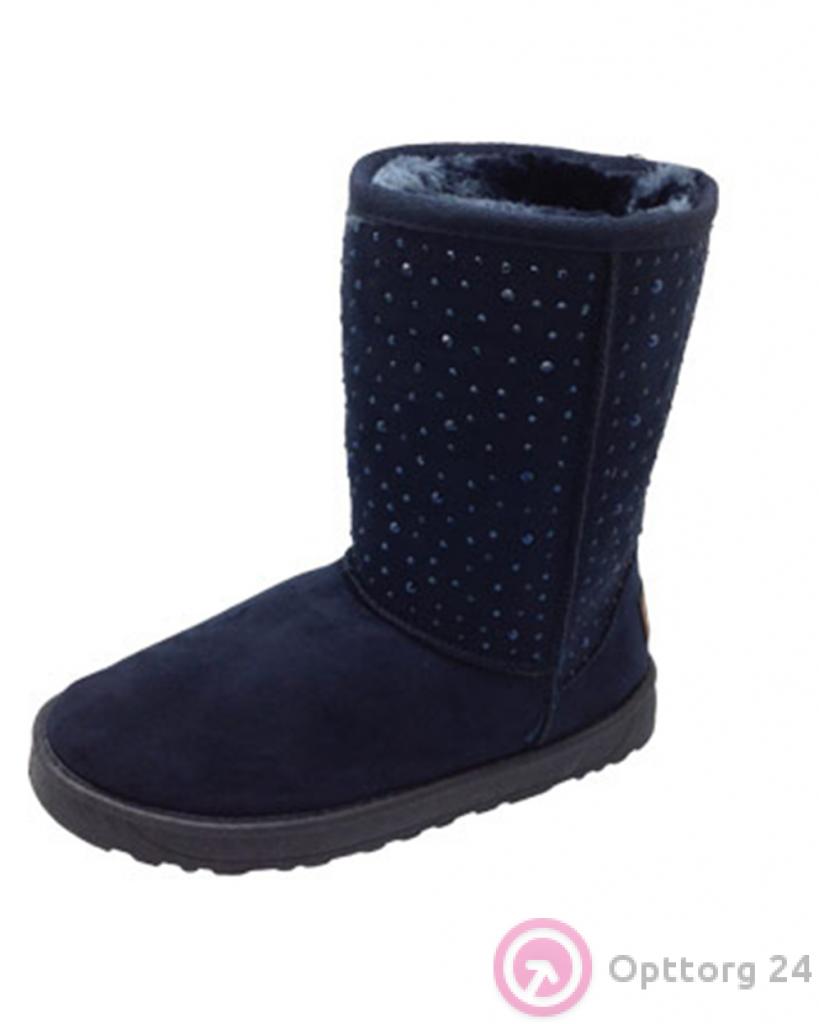 Сапоги женские зимние синего цвета с пайетками оптом