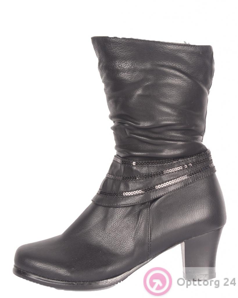 Женские зимние ботинки на каблуке. украшены стразами посередине модели.