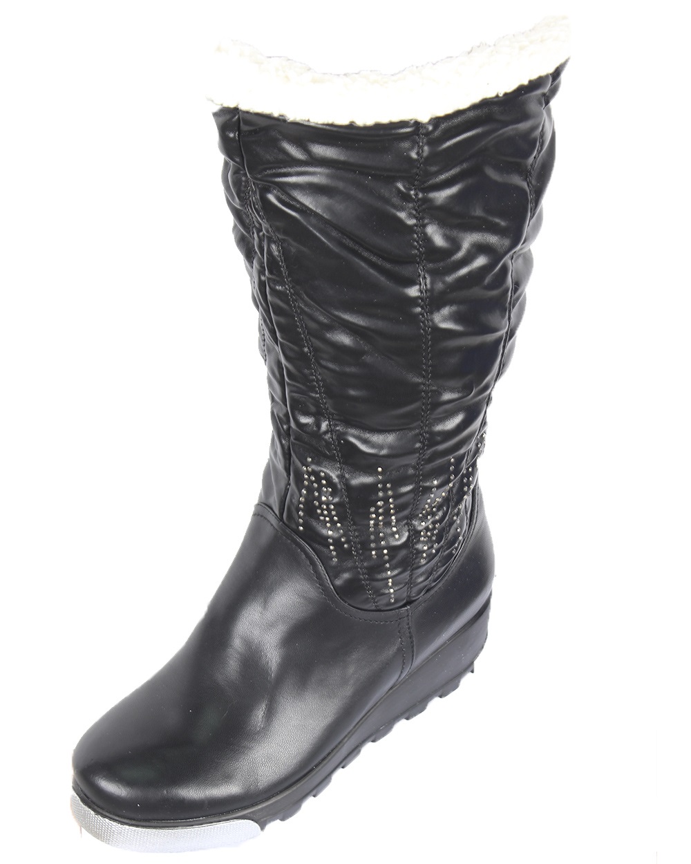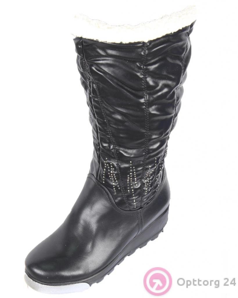 Женские сапоги черного цвета с синтетическим мехом. оптом
