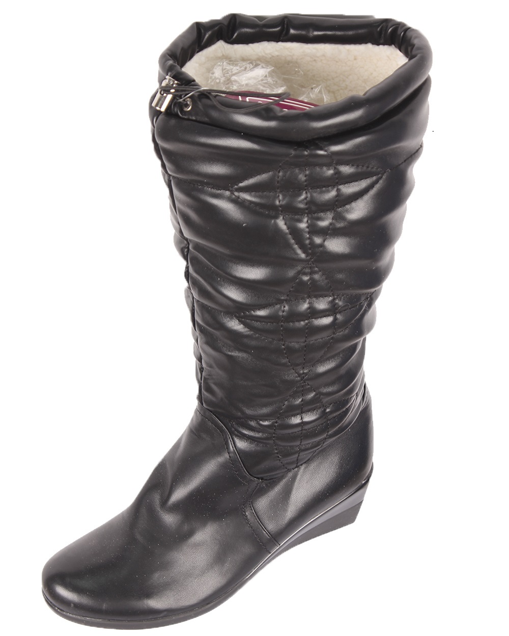 Женские сапоги черного цвета на широкой подошве. Дутая модель на синтетической подкладке.