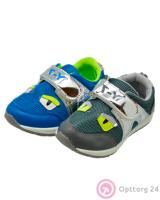 Кроссовки подростковые синие и серые с салатовыми вставками