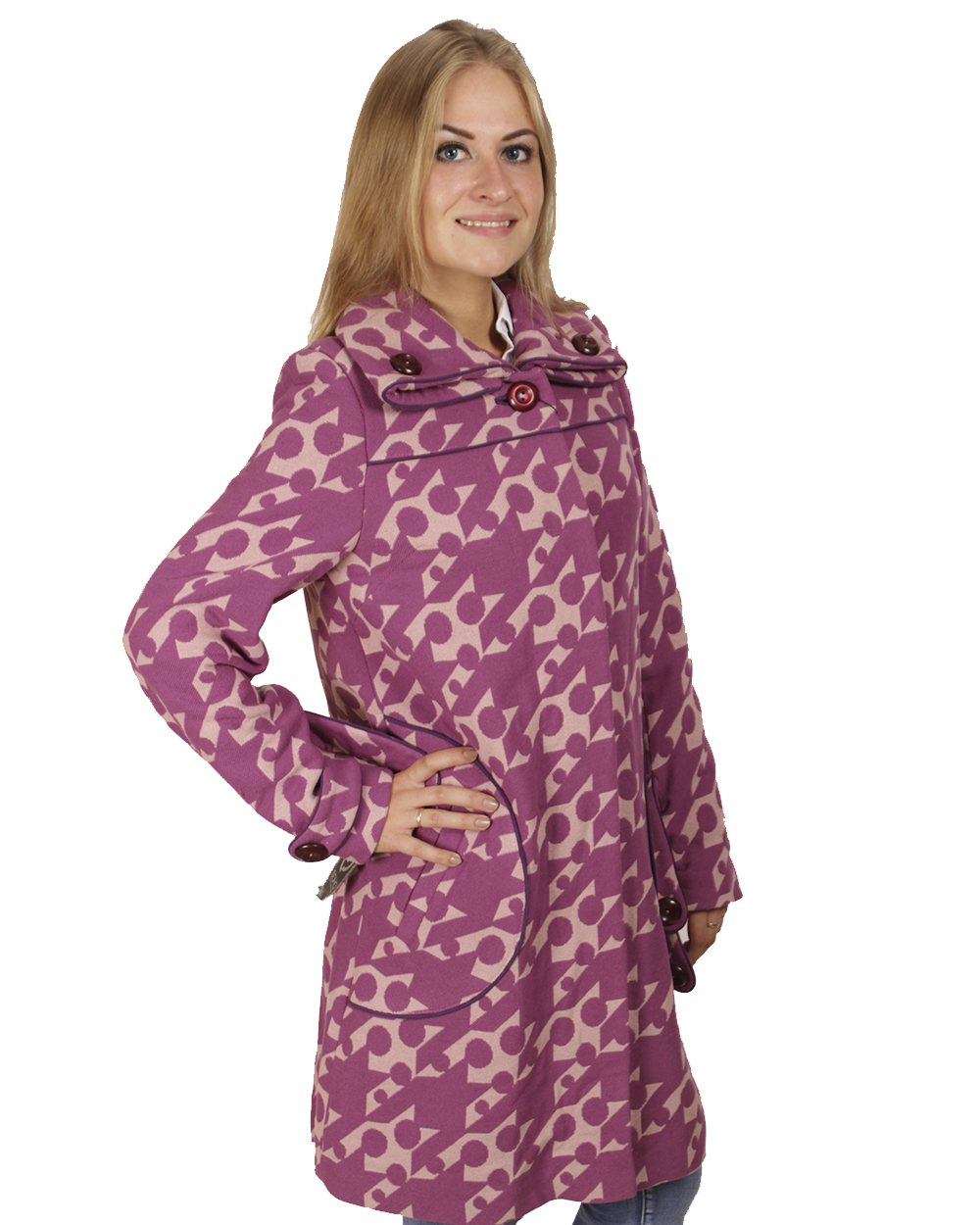 Пальто розовое , женское. Раскрас в виде мозайки на белом фоне. Тёплое, плотное пальто, прекрасно подойдет для прогулки в прохладный осенний вечер.