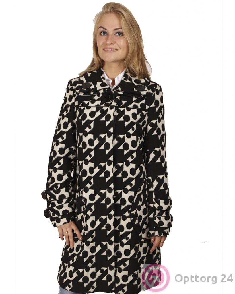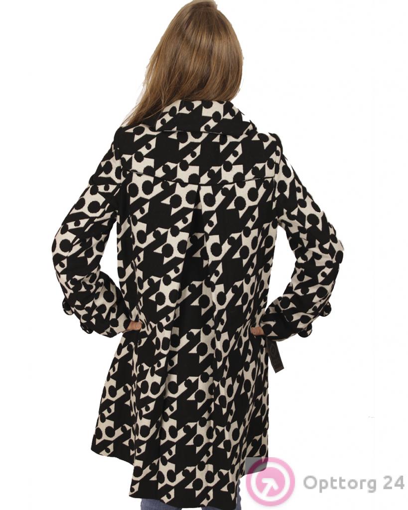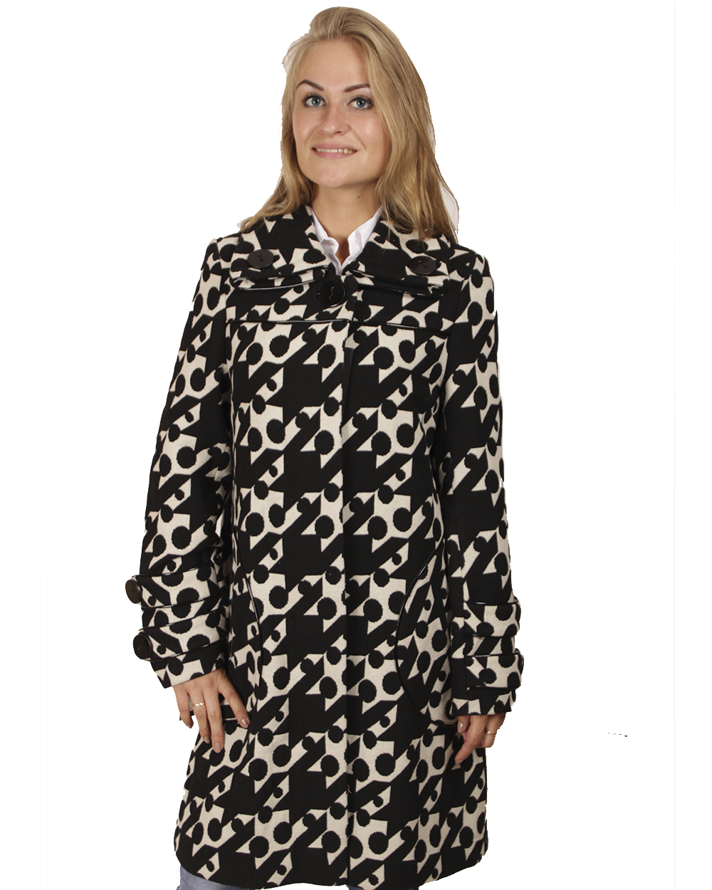 Пальто черное, женское. Раскрас в виде мозайки на белом фоне. Тёплое, плотное пальто, прекрасно подойдет для прогулки в прохладный осенний вечер.