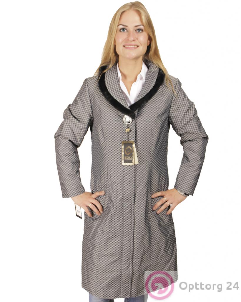 Пальто женское, серого цвета с пушком на воротнике. оптом