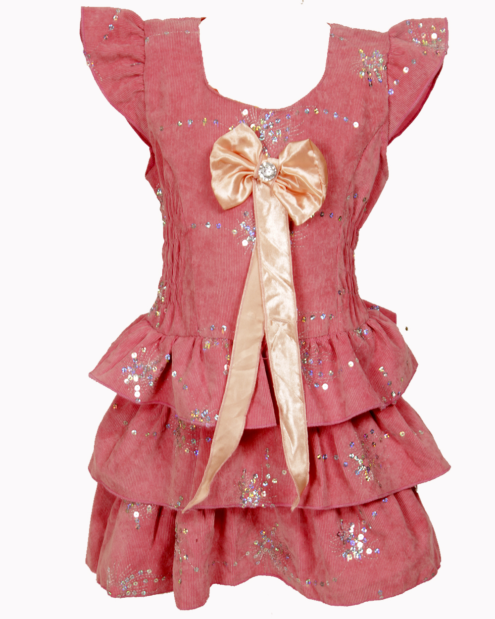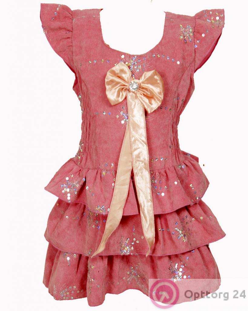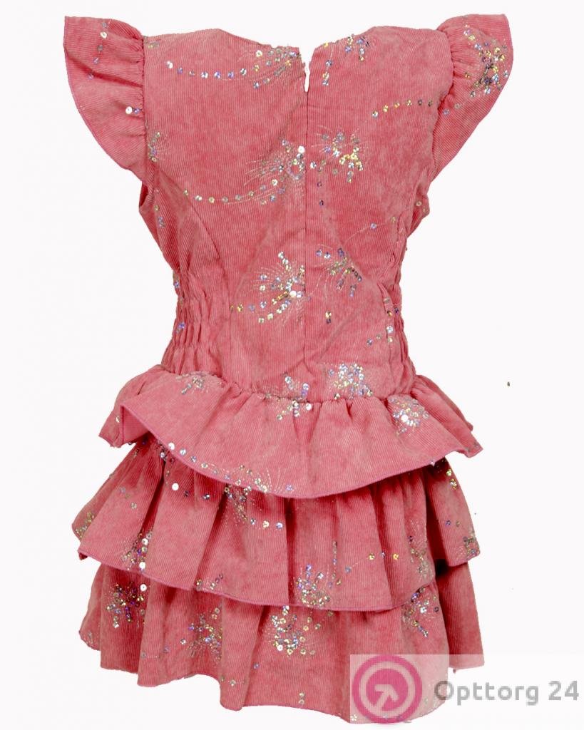 Платье персикового цвета для девочки украшено блёстками по всей длинне . оптом