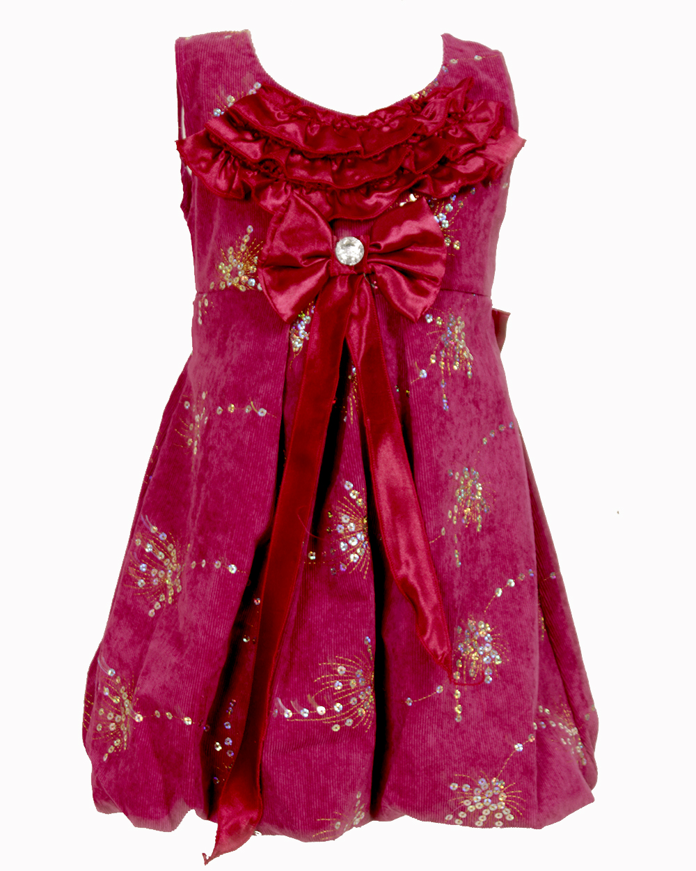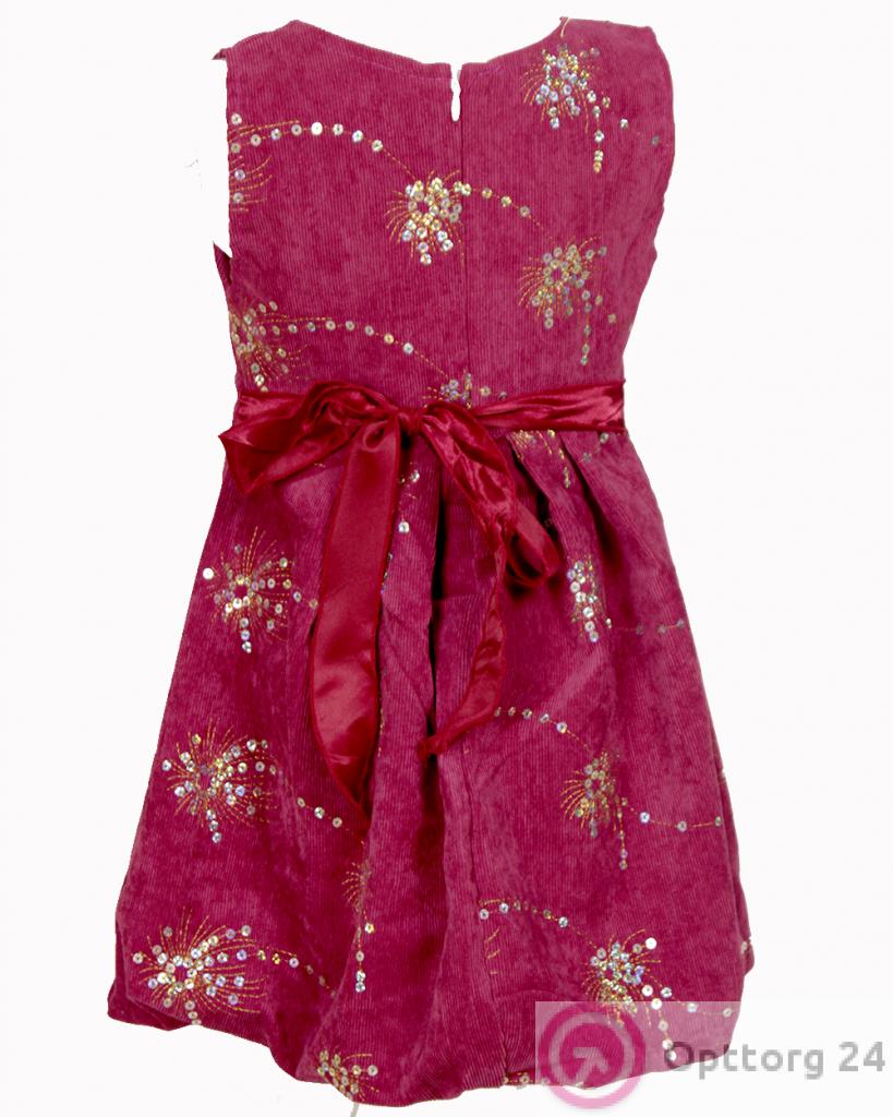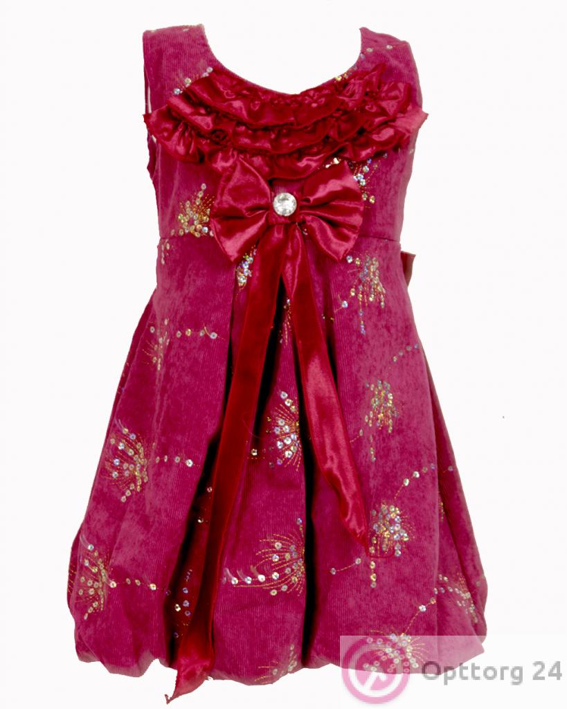 Детское платье для девочки, розового цвета. Модель украшена блёстками и бантом.