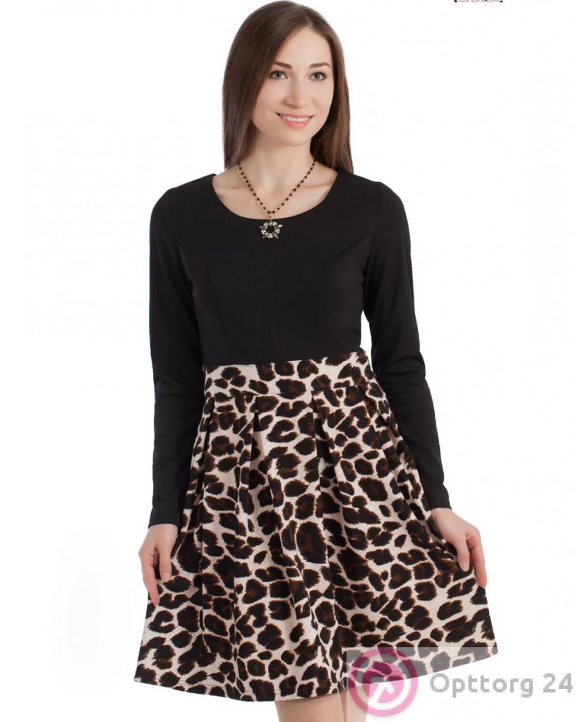 Платье с леопардовым принтом внизу оптом