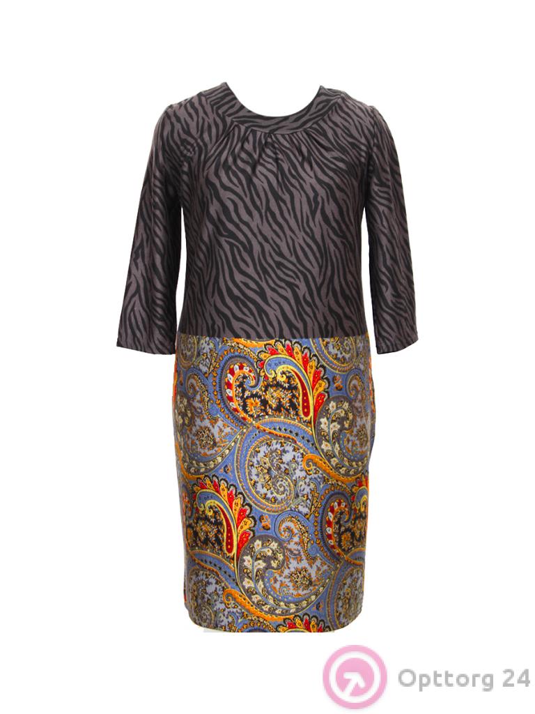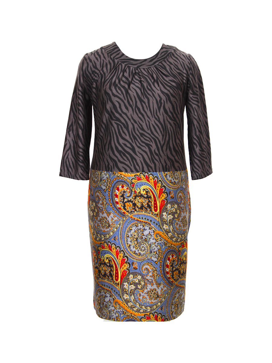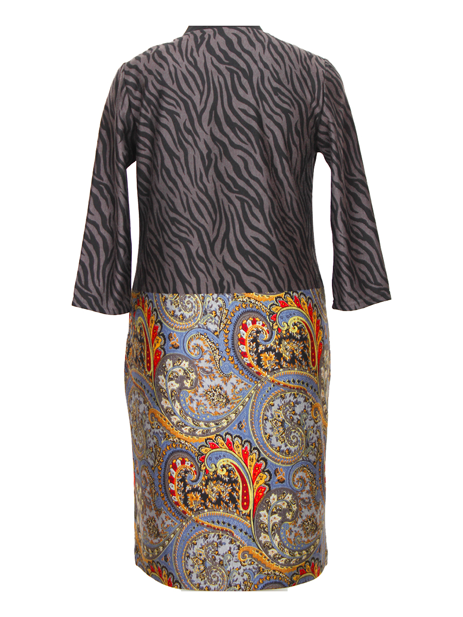 Женское платье черного цвета с принтом зебра. Низ с необычными узорами. Стиль классический. Рукав прямой.
