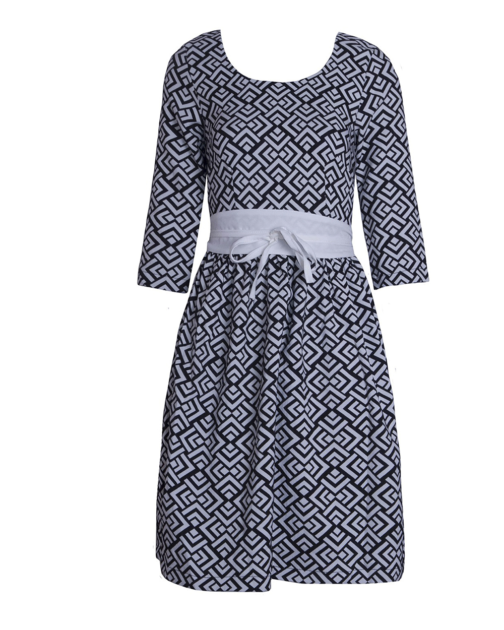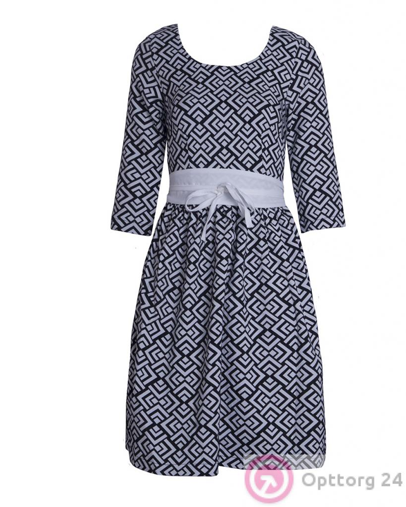 Оригинальное и яркое платье из полиэстера. Модель поможет создать легкий ненавязчивый образ и прекрасно подчеркнет фигуру, благодаря контрастному широкому поясу.