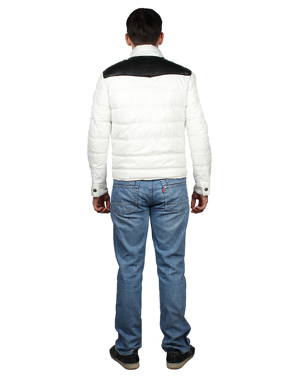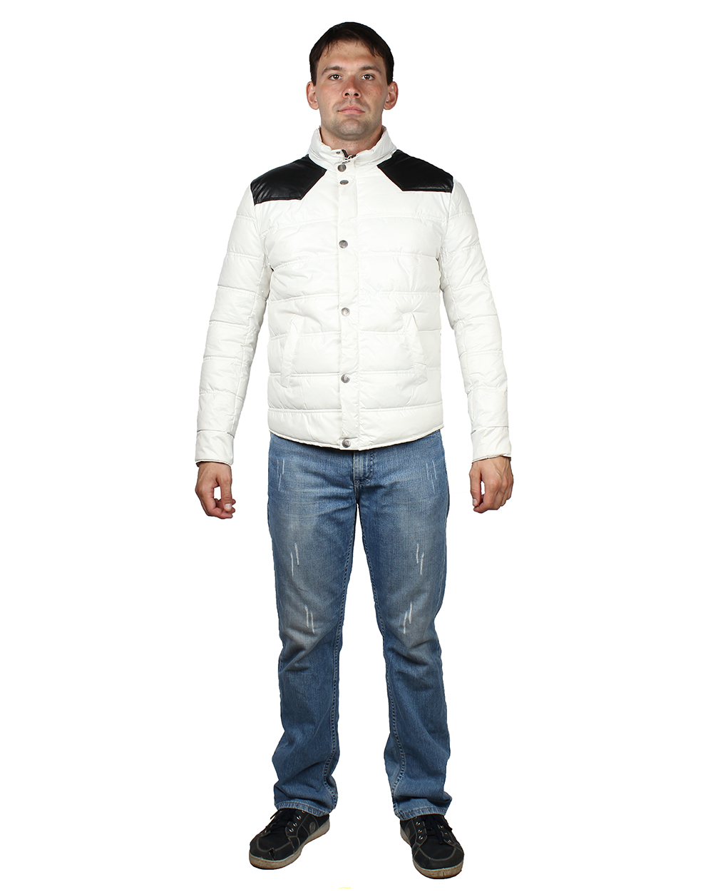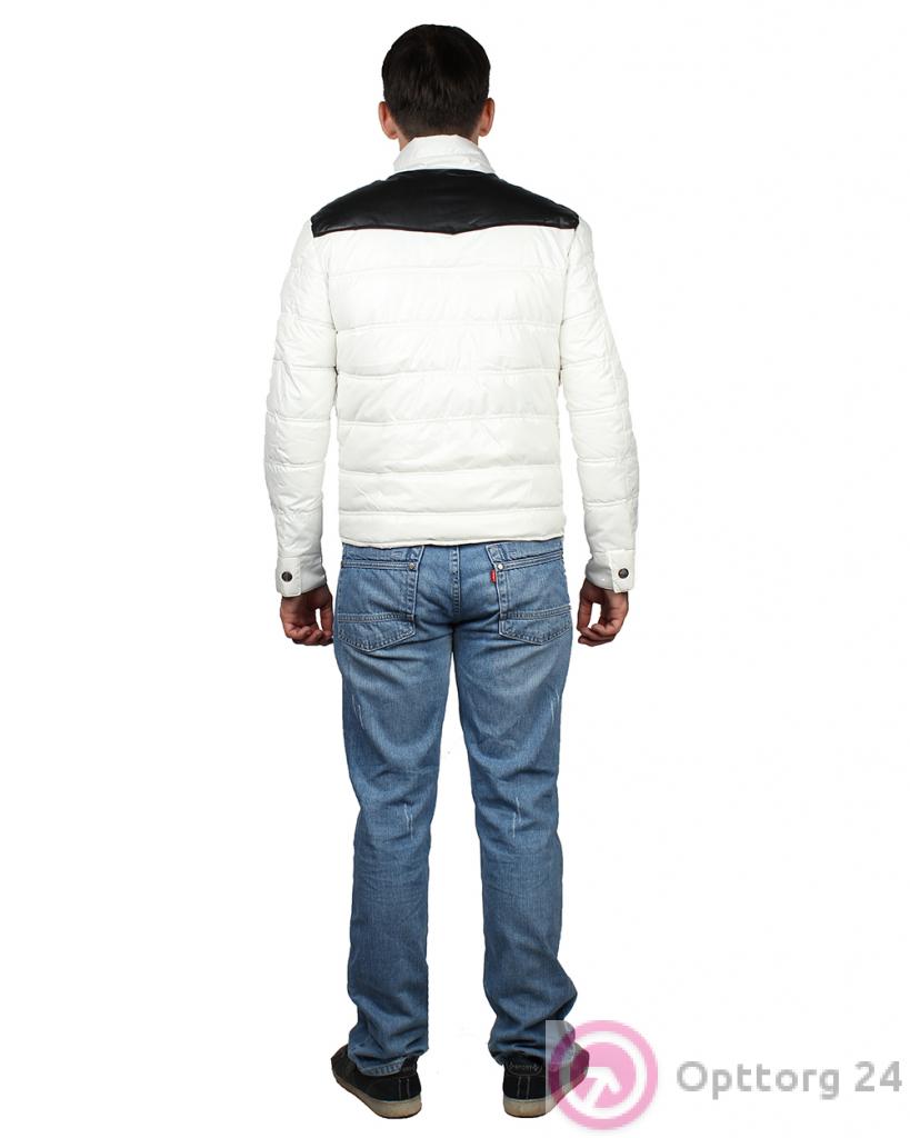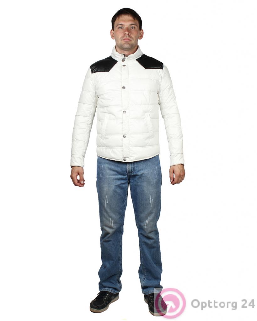 Пуховик мужской стеганый белого цвета с черными вставками оптом