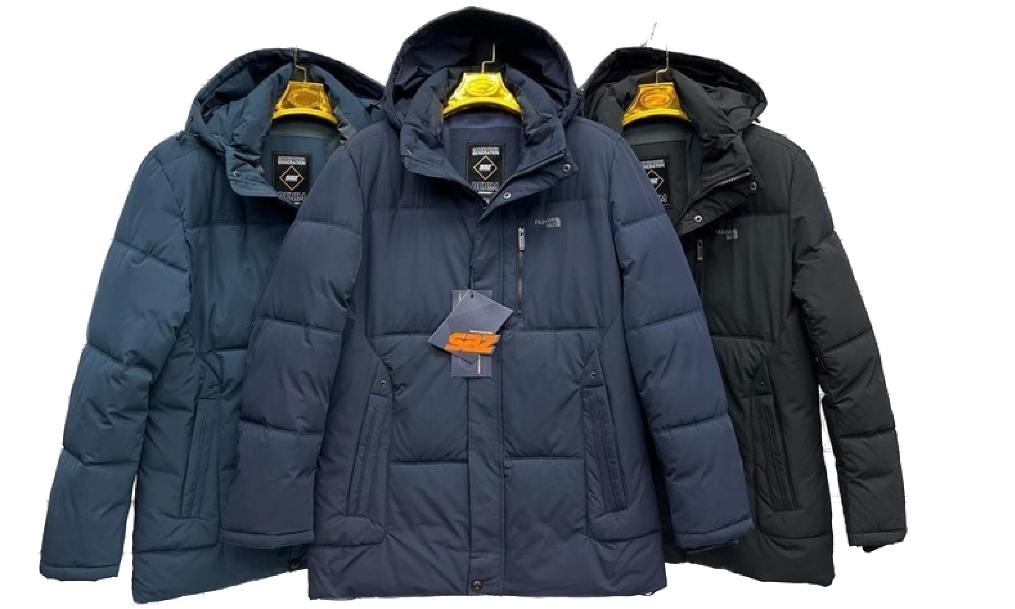 Мужская зимняя куртка — идеальный выбор для холодного сезона. Модель представлена в элегантных однотонных оттенках: темно-сине-зелёном, тёмно-синем и черном, что позволяет легко комбинировать её с различными элементами гардероба.