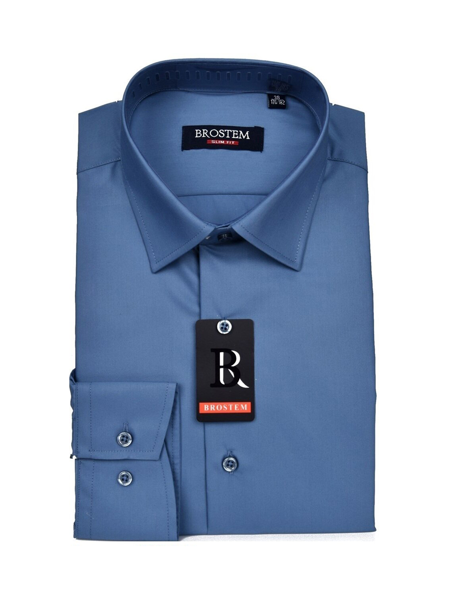 Классическая мужская рубашка с длинным рукавом. Крой полу приталенный. Цвет приглушенный синий.