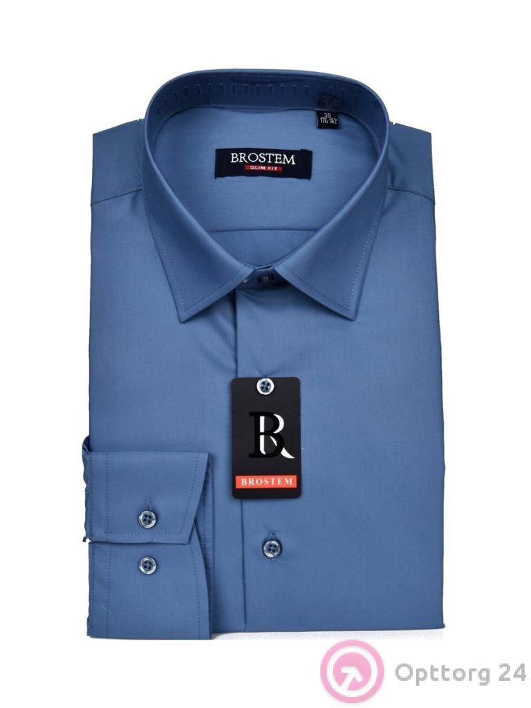 Рубашка мужская классическая с длинным рукавом приглушенного синего цвета оптом