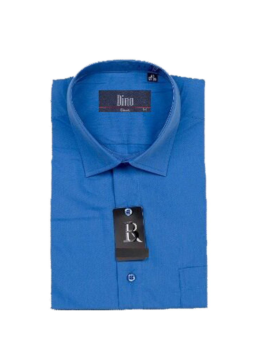 Классическая мужская рубашка с длинным рукавом. Крой полу приталенный. Цвет синий яркий
