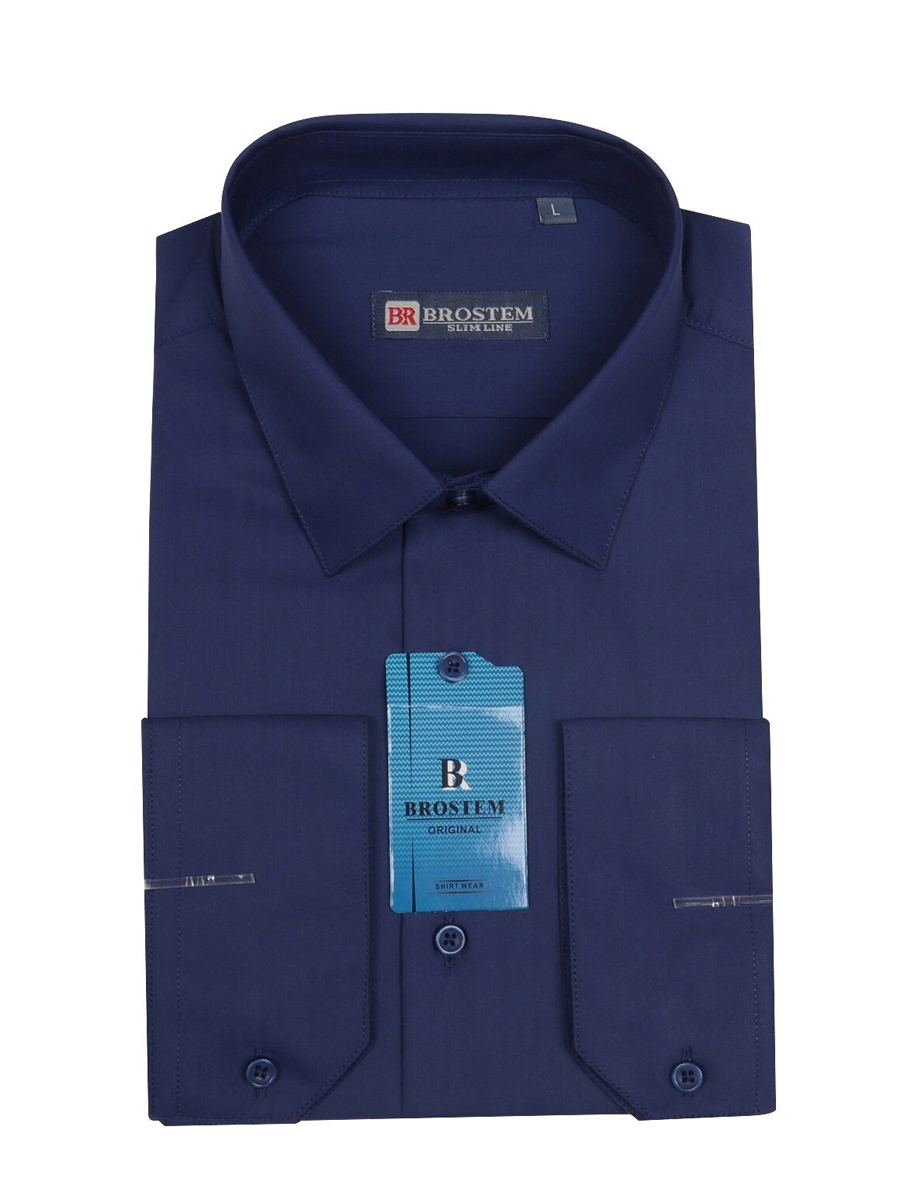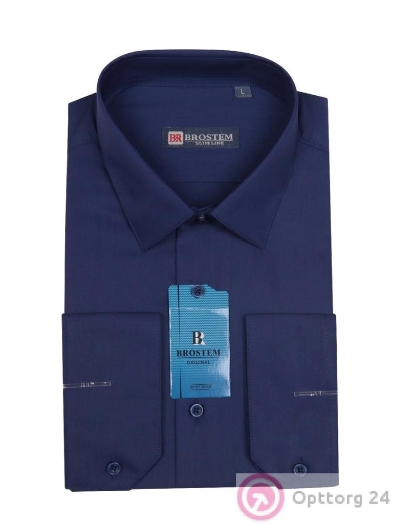 Рубашка мужская классическая с длинным рукавом темно-синяя оптом