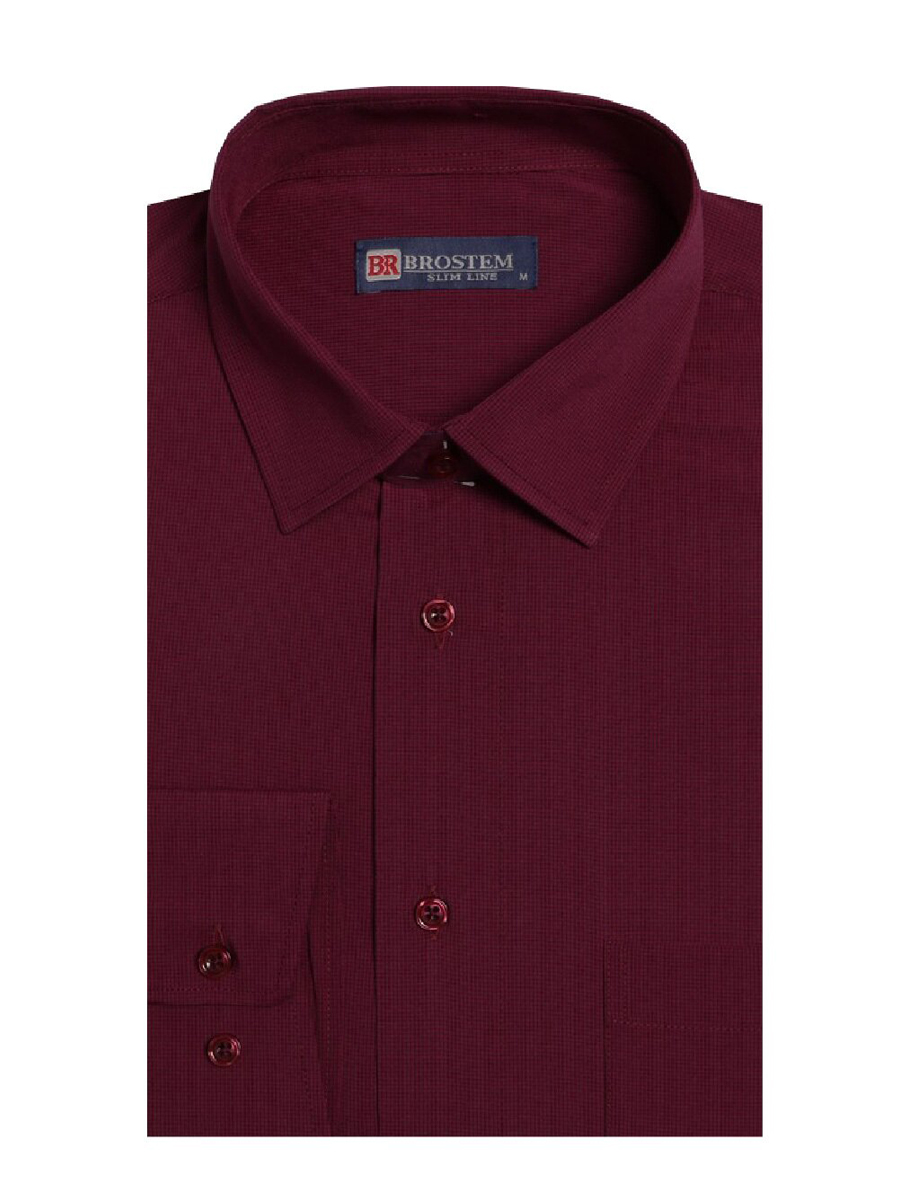 Классическая мужская рубашка с длинным рукавом. Крой полу приталенный. Цвет винный.