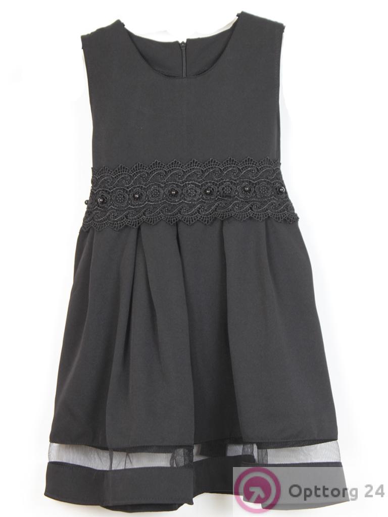 Сарафан школьный для девочки с кружевным поясом. Черный
